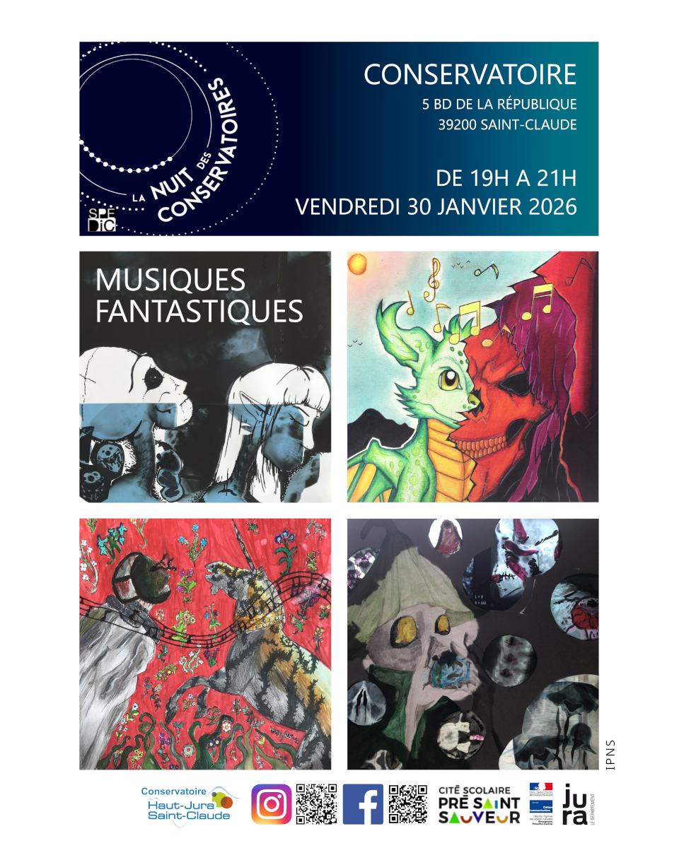 « La nuit des conservatoires » se tiendra vendredi 30 janvier prochain à 19h. Les élèves et les professeurs du Conservatoire Haut-Jura-Saint-Claude vous ont préparé une soirée sur le thème des musiques fantastiques. Du duo au grand orchestre, de la musique à tous les étages pour 2h de concerts !